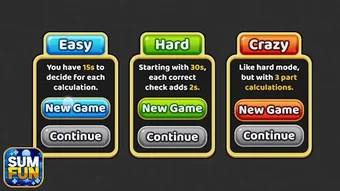 Sum Fun 2024 ist ein fesselndes Puzzle-Spiel, das die Rechenfähigkeiten und das schnelle Denken der Spieler auf die Probe stellt. In diesem temporeichen Spiel müssen die Spieler innerhalb eines begrenzten Zeitrahmens entscheiden, ob angegebene mathematische Berechnungen korrekt oder falsch sind. Mit jedem richtigen Antwort erhalten die Spieler Punkte und steigen in schwierigere Level auf, was nicht nur den Spaßfaktor erhöht, sondern auch die mathematischen Fähigkeiten verbessert.